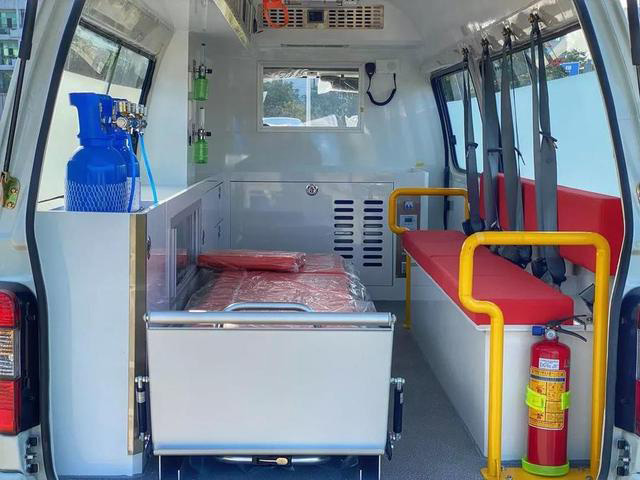 負(fù)壓救護(hù)車與普通救護(hù)車并無多大區(qū)別,駕駛艙其實(shí)和普通救護(hù)車沒什么區(qū)別,就是多了一個(gè)警報(bào)。車廂后部的對(duì)講系統(tǒng)對(duì)講機(jī),司機(jī)要通過和病患溝通都是需要通過這個(gè)對(duì)講機(jī)溝通。后面車廂內(nèi)部多了個(gè)救護(hù)車負(fù)壓裝置,車載負(fù)壓凈化器。車頂有個(gè)大功率紫外線消毒燈。比普通救護(hù)車的功率尺寸要大一些。負(fù)壓救護(hù)車和普通救護(hù)車一樣配備氧氣罐,氧氣袋。和一些急救設(shè)備,吸痰器,轉(zhuǎn)運(yùn)傳染性病人的話,病人單獨(dú)在車廂后面。司機(jī)不和病人接觸。對(duì)司機(jī)負(fù)責(zé)對(duì)病人負(fù)責(zé)以防交叉感染。監(jiān)控錄像系統(tǒng)可以實(shí)時(shí)看到病人在車內(nèi)的情況。