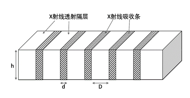 焦距(f):斷面看鉛條延長線會聚點到柵板垂直距離,即柵板焦距(半徑)。柵密度(N):每厘米范圍內(nèi)含有的鉛條數(shù),一般40~65線/cm。柵比(R):鉛條高度與柵條間隙之比,比值越高濾除散射線能力越強,一般8:1~14:1之間。結(jié)構(gòu)組成:3~5mm薄板,用0.05~0.1mm鉛條,夾持在鋁或紙之間平行或按斜率排列,相鄰鉛條間用易透X線物質(zhì)填充定位、黏合,如木、紙、鋁片等。