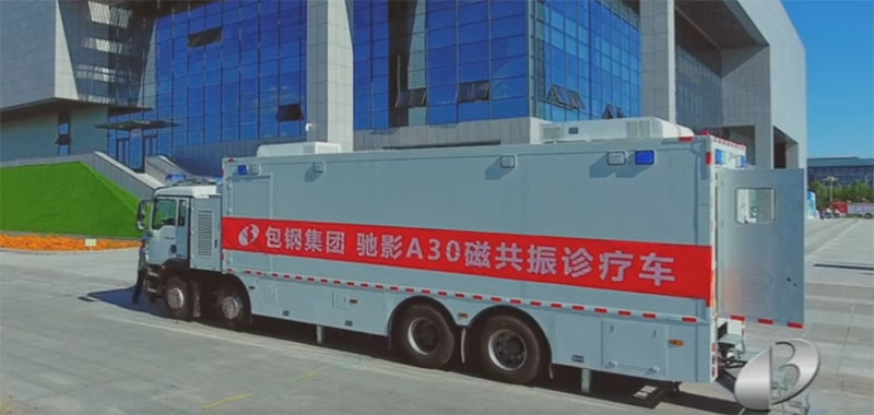 車載磁共振醫(yī)療車不會超高和超寬與普通9米廂式貨車基本相同,可在正常通行公路、隧道和負(fù)荷大于28噸的橋梁。車輛隨時可自主行駛移動,停車即可啟動磁共振系統(tǒng)掃描。醫(yī)療車已具備全地域、全天候、全道路的適應(yīng)性:可在-40 ℃ ~ 65 ℃的溫度下和海拔5500米正常工作,適應(yīng)高溫、高濕、干熱、濕熱、低溫等多種環(huán)境;單程最大行駛距離2000公里;可由普通民用電網(wǎng)供電,也可使用自發(fā)電機(jī)供電,自發(fā)電機(jī)可支持系統(tǒng)連續(xù)工作超過100小時。這些指標(biāo)均已達(dá)到嚴(yán)苛的軍用醫(yī)療車輛標(biāo)準(zhǔn)。掃描一位患者只需10-20分鐘。移動化的磁共振醫(yī)療車可將大型醫(yī)療診斷設(shè)備和醫(yī)療技術(shù)下沉到基層,為基層民眾提供多種高端診斷服務(wù),如偏遠(yuǎn)地區(qū)的地方病、常見病巡檢,多種高發(fā)病早期普查,普通X光設(shè)備難以確診的頸椎、腰椎椎間盤病變診斷,關(guān)節(jié)及軟組織損傷診斷,神經(jīng)系統(tǒng)疾病診斷,以及康復(fù)檢查等。