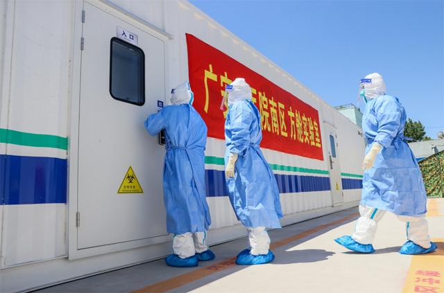 方艙實(shí)驗(yàn)室外形似集裝箱貨柜,單個(gè)艙體占地面積約40平方米,它雖小,但功能齊全。提高核酸檢測能力,堅(jiān)決守住來之不易的疫情防控成果方艙實(shí)驗(yàn)室助力疫情防控的重要手段。疫情無情人有情,大范圍的核酸檢測,分秒必爭。檢測人員物資整理、核酸樣本接收排版、數(shù)據(jù)整理、結(jié)果錄入、報(bào)告審核,實(shí)驗(yàn)室的檢測人員在距離病毒最近的地方,符合二級(jí)生物安全實(shí)驗(yàn)室的要求,整體負(fù)壓,準(zhǔn)確嚴(yán)謹(jǐn)完成每個(gè)實(shí)驗(yàn)步驟。方艙實(shí)驗(yàn)室分為四大區(qū)域,包括試劑準(zhǔn)備、樣本處理、核酸擴(kuò)增等核酸檢測必備工作區(qū),為配合核酸檢測任務(wù)安全有序完成,方艙實(shí)驗(yàn)室運(yùn)行期間,檢測量很大,確保準(zhǔn)確高效的檢測,檢測人員的工作時(shí)間很長,平均日工作時(shí)間約18個(gè)小時(shí)。方艙實(shí)驗(yàn)室的啟動(dòng)運(yùn)行,緩解各個(gè)檢測系統(tǒng)的壓力,靈活作業(yè)的特點(diǎn),爭做核酸檢測質(zhì)量的壓艙石,嚴(yán)格實(shí)驗(yàn)室管理制度,高質(zhì)量科學(xué)檢測,必要時(shí)還可突破地域限制,疫情防控保障工作提供了高效有序的運(yùn)轉(zhuǎn)。確保核酸檢測工作安全、及時(shí)、精準(zhǔn)、高效。
