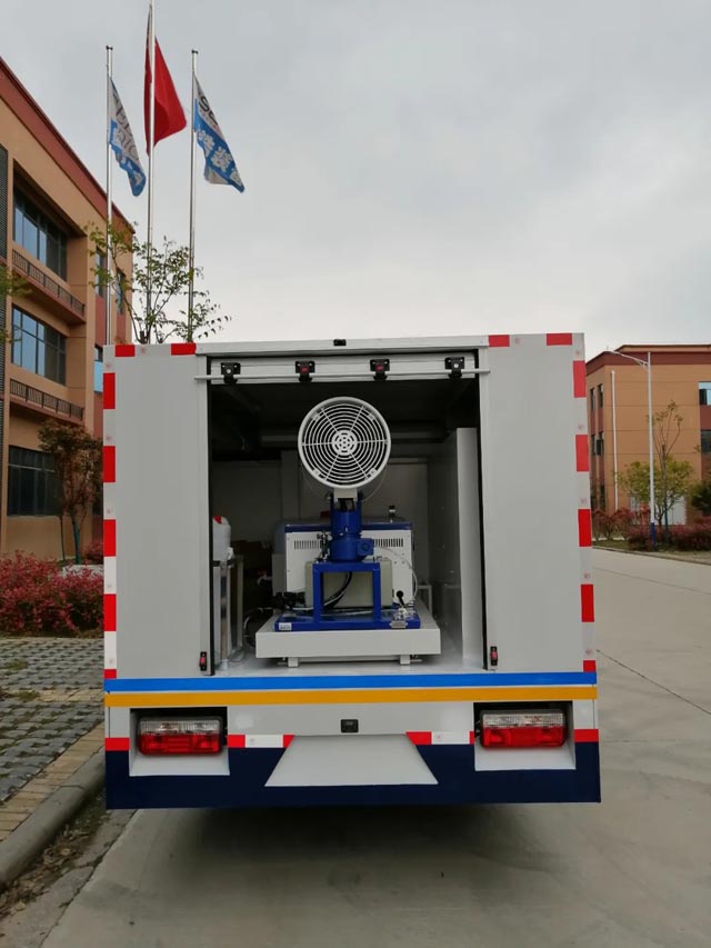 衛(wèi)生防疫消殺車對疫情可能遺留在空氣中的病毒核進行消殺