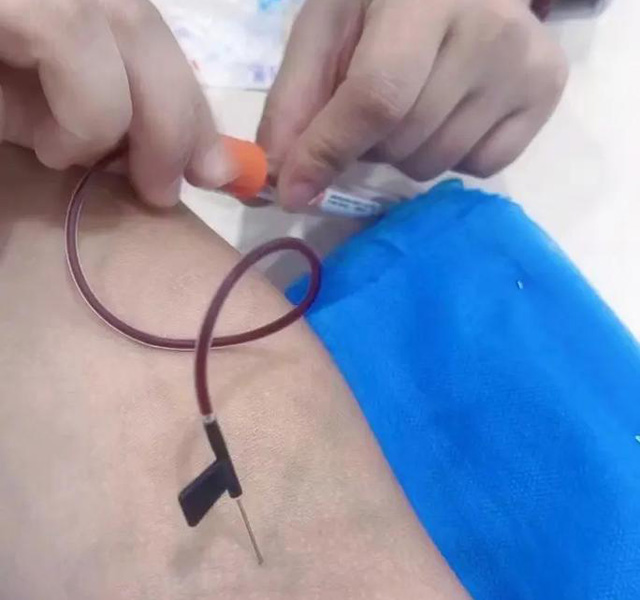 血管帶一定要扎緊,血管才會(huì)充盈。然后握拳可以看到血管。血管扁的不明顯的話就輕輕的拍一下。不需要用力的打這樣可以清晰的看到血管。血管比較細(xì)的話。扎血管的地方消毒兩次,采血針打開后。看到的兩頭都是針,針的一頭插進(jìn)血管,另外一頭插到管引血液。血液抽的差不多時(shí)候就用大拇指頂著管頭。血就流不出來(lái)了。然后解開止血帶,取一根干棉簽。然后把管的針拔出來(lái)就可以了。進(jìn)針角度大時(shí)候不疼但容易漏針,進(jìn)針角度小時(shí)候有點(diǎn)疼不容易漏針。進(jìn)針的角度為15度-30度不容易漏針也不疼。