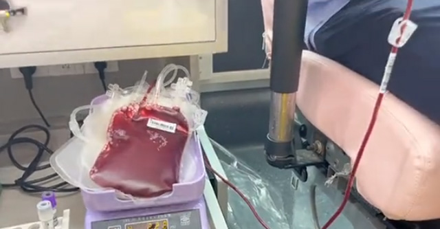采血稱一直搖晃就是要讓血液動起來。那么有的人想,動著獻血的話,血液是不是就動起來了。那么是不是不需要采血稱的小托盤了。其實呢獻血時候手臂是盡量不要晃動的,當血液從手臂流出時候,正常情況下很快就會凝固,血液流進搖擺的采血袋就不會凝固。校托盤的作用真大。