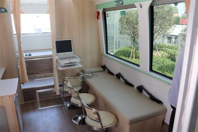 體檢車(chē)上都有這些檢查室?車(chē)廂里有男女彩超室,男女心電圖室,內(nèi)科、外科以及,骨密度、碳十三檢測(cè)室等,可以對(duì)血常規(guī)、肝膽功能,腎功能、空腹血糖、尿常規(guī),心電圖、肝膽胰脾B超等項(xiàng)目進(jìn)行檢查。車(chē)上都有這些功能室?候診登記處可以在候診區(qū)等待就診,各類(lèi)醫(yī)療用品和采樣冷藏柜也很完善。體檢車(chē)廂配置了全自動(dòng)生化分析儀、全自動(dòng)尿液分析儀、B超檢查室、心電圖檢查室等,可以進(jìn)行前臺(tái)導(dǎo)診、采血、尿液檢查、實(shí)驗(yàn)室化驗(yàn)、DR拍攝、超聲心電檢查等項(xiàng)目,能夠?yàn)槁毠みM(jìn)行全面體檢,最快當(dāng)天即可出結(jié)果。